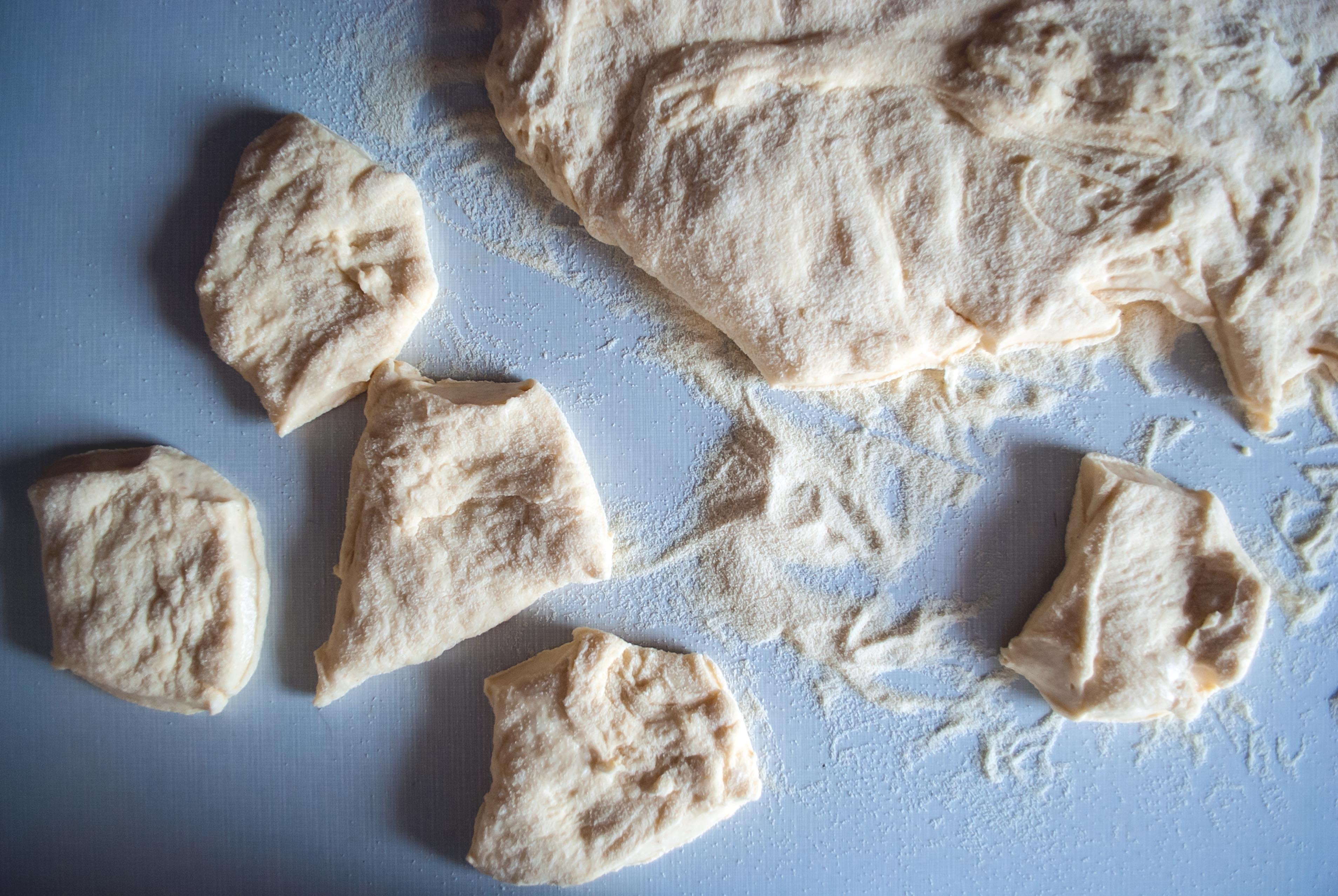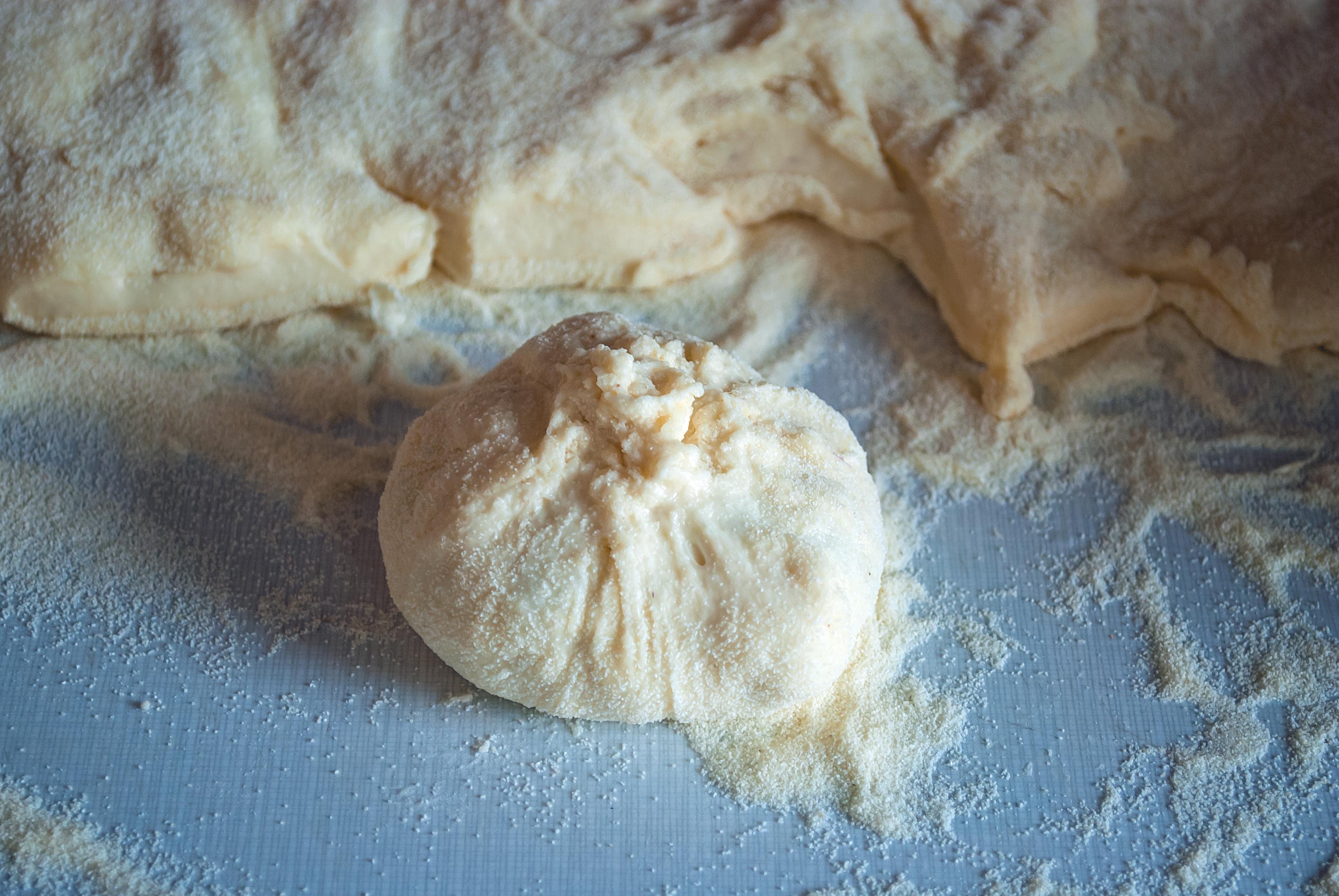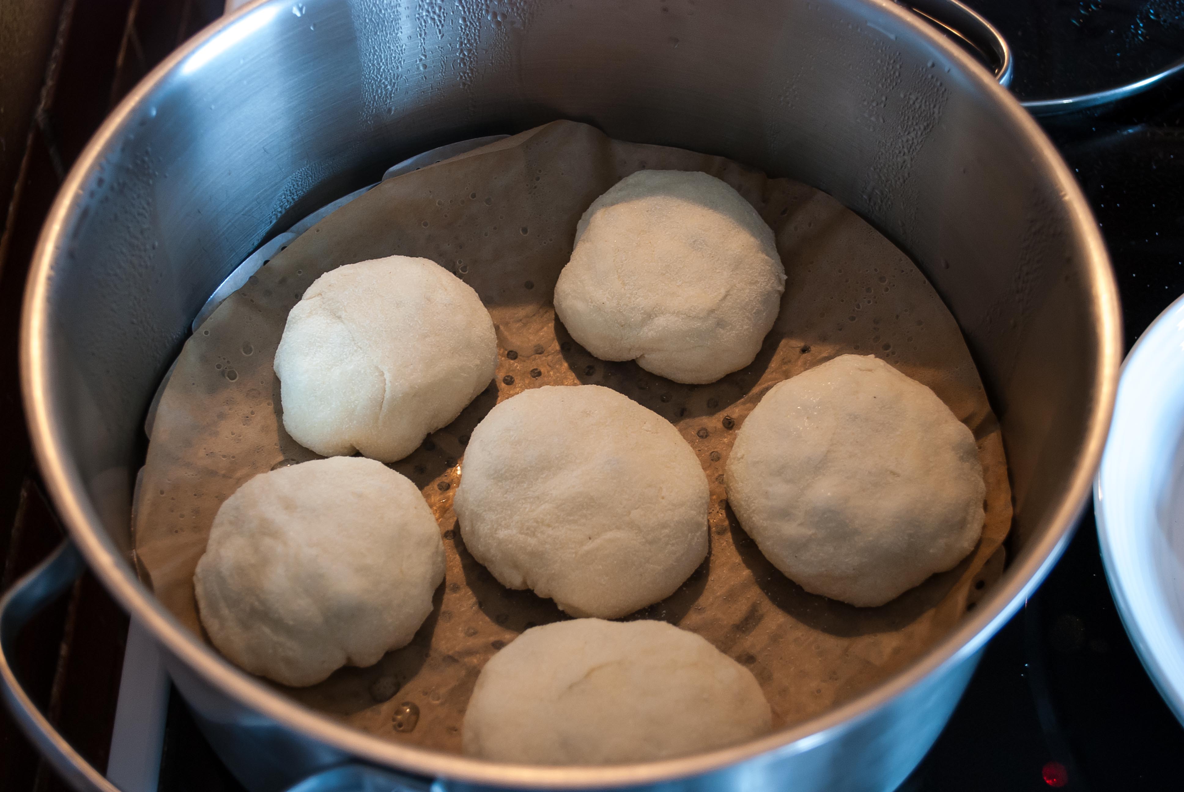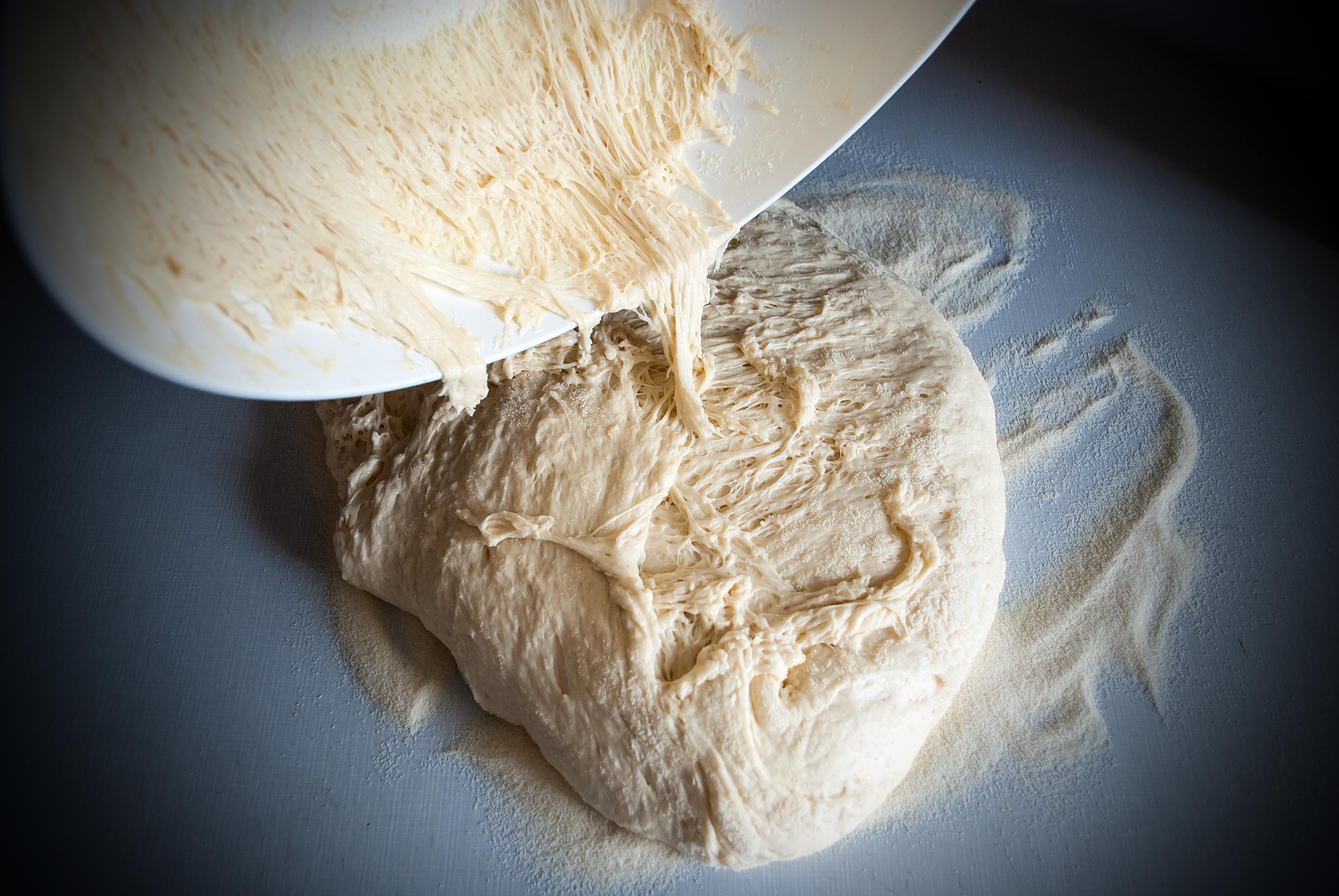 Sypotiny se promísí. Mléko se spolu s máslem rozehřeje do vlažna a rozšlehá se spolu se žloutky. Tekutou směs vmícháme do sypkých surovin a vypracujeme těsto. Využijte na vypracování těsta svaly mužů, když je pak pěkně pochválíte, tak budou k dispozici i příště 😉 Chce to makat alepsoň 10 minut. Nechte kynout 1 hodinu.